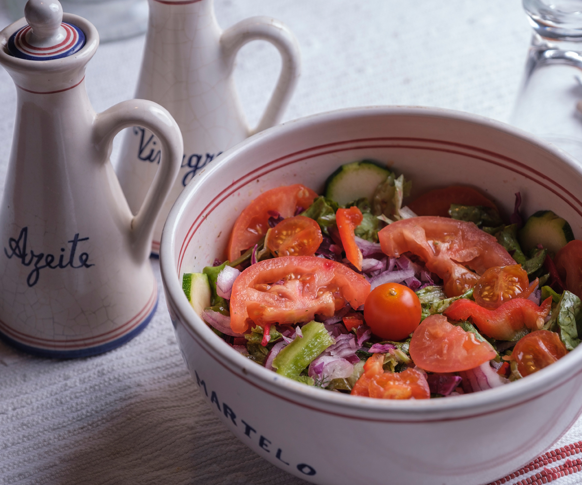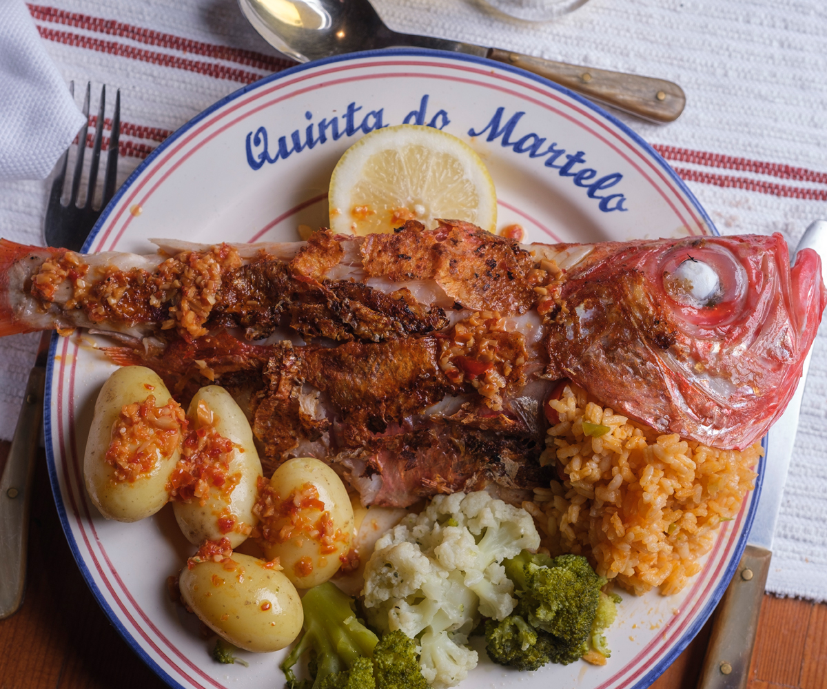 Nesta cozinha, onde imperam saberes tradicionais, desde os vegetais fresquíssimos, colhidos na hora e produzidos sem recurso a químicos, passando pelo peixe fresco do nosso mar, até às melhores carnes trabalhadas a lenha, em receitas ancestrais, com todos os cuidados de higiene e segurança alimentar, reside a alma da Taberna da Quinta do Martelo.